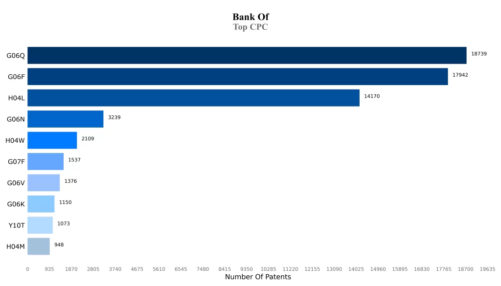 Most of the patents of the Bank of America are in the classification of G06Q and G06F, which indicates the core areas of technology focus of the company.