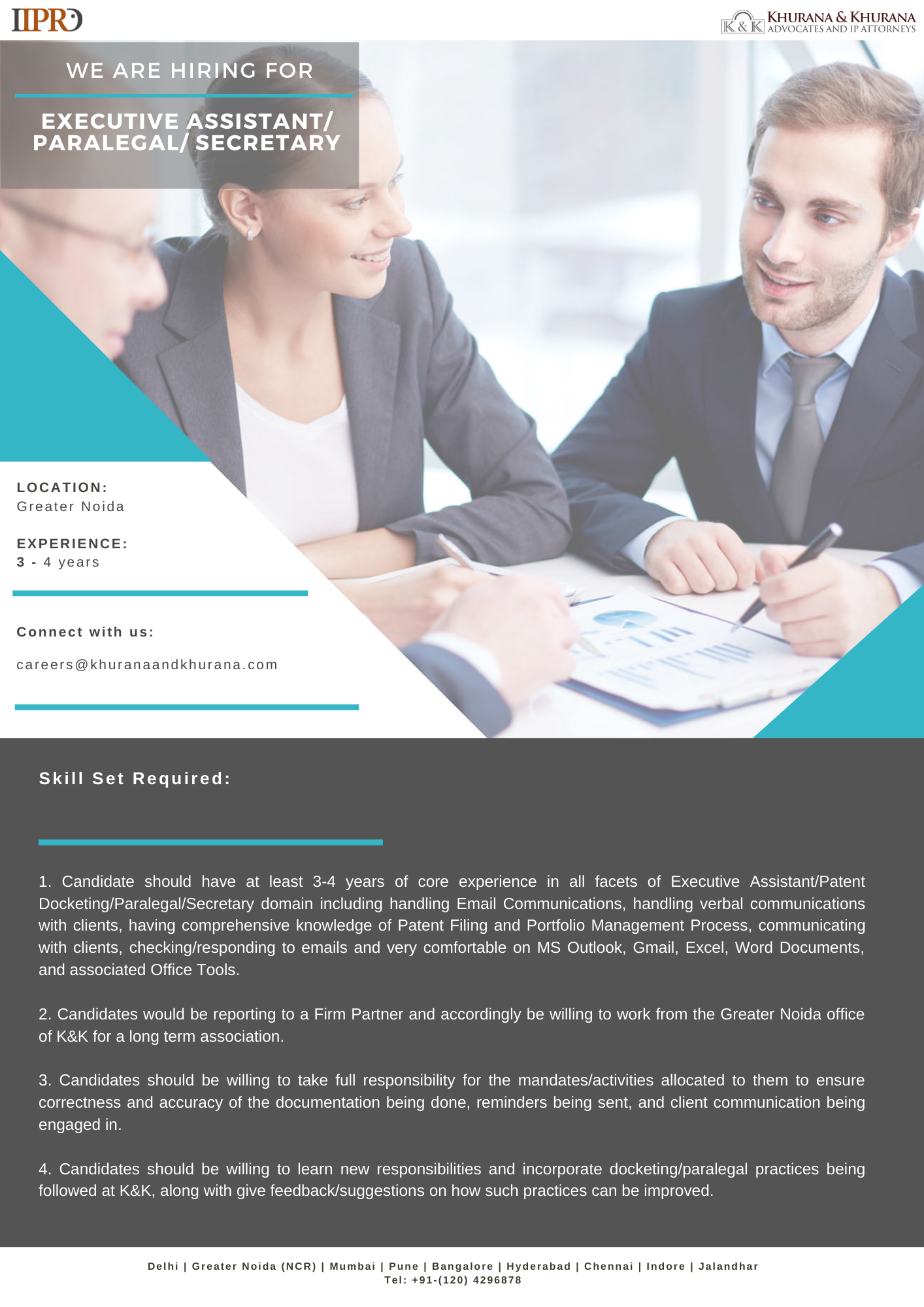 For starters, you’ll be challenged as you have never been challenged before. You will work with some of the smartest IP Practitioners/Lawyers in the country. You’ll gain exposure and experience of interacting and working with some of the largest global Corporates, Technology Companies, Law Firms, Licensing Firms, and Brands. Whether you have just started out or are an experienced pro, it isnt’ about how much you’ll work, but about how much you’ll get out of your work.