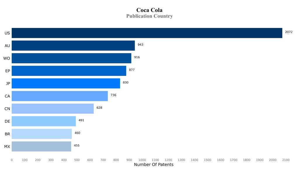 Countries in which Coca Cola Filed Patents