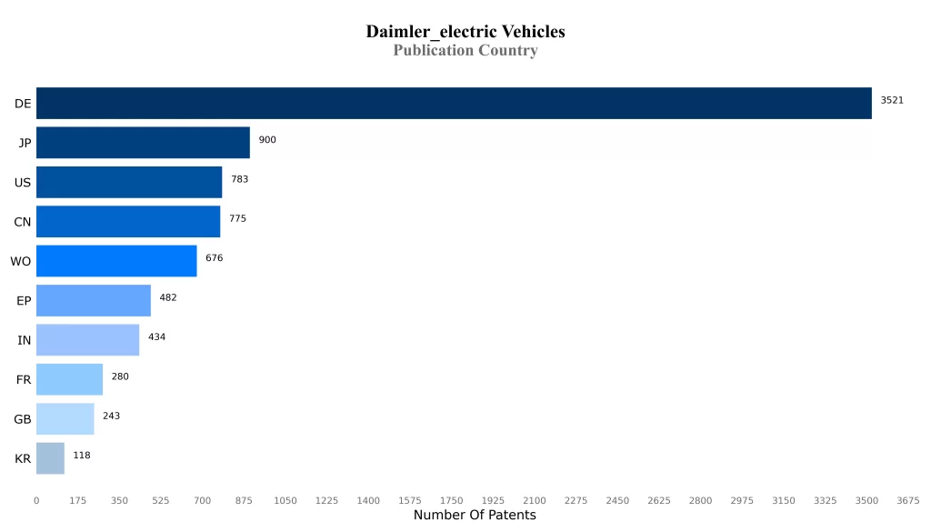 Daimler_electric Vehicles along with its key subsidiaries has a total of around 8670 patents/applications globally as of the date of the instant publication, out of which 903 patents have been issued. Of these 8670 patents/applications, more than 35.28% patents/applications are active. Germany is where Daimler_electric Vehicles has filed the maximum number of patents, followed by Japan.