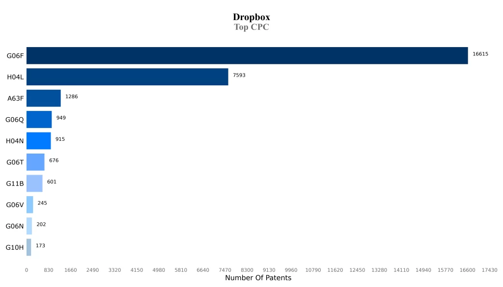 Most of the patents of the Dropbox are in the classification of G06F and H04L, which indicates the core areas of technology focus of the company.