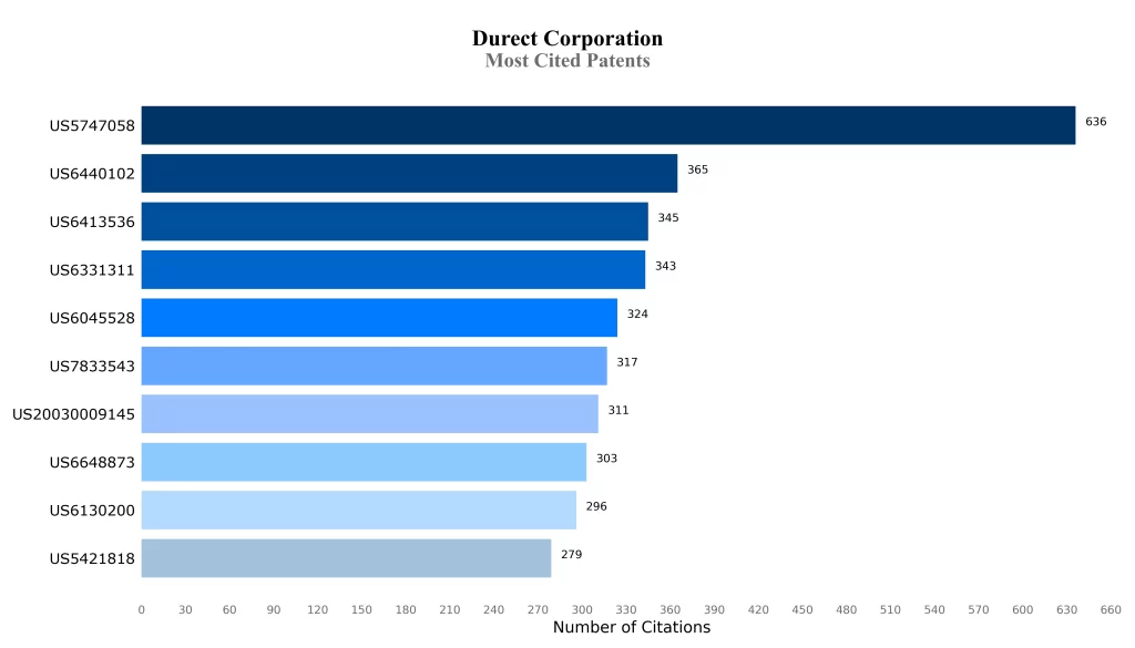 Some exemplary patents of Durect Corporation Portfolio have been covered and demonstrated in this article and the instant article further indicates additional insights into the portfolio, such as worldwide patent filing activity, patent filing trend over the years, and many other statistics pertaining to the concerned entity. Certain other interesting innovations trends of the Durect Corporation Portfolio have also been placed below for exemplary and illustration purposes only. A detailed report can also be generated and shared for any other entity on the lines desired, for which a simple email can be sent to [email protected] indicating the nature of insights required and the scope/intent of the study/exercise. We can also be contacted through www.iiprd.com, wherein IIPRD is a leading IP Asset Management and IP/Patent Support Practice with over 350 professionals spread across multiple jurisdictions in the US, India, South-East Asia, and the GCC.