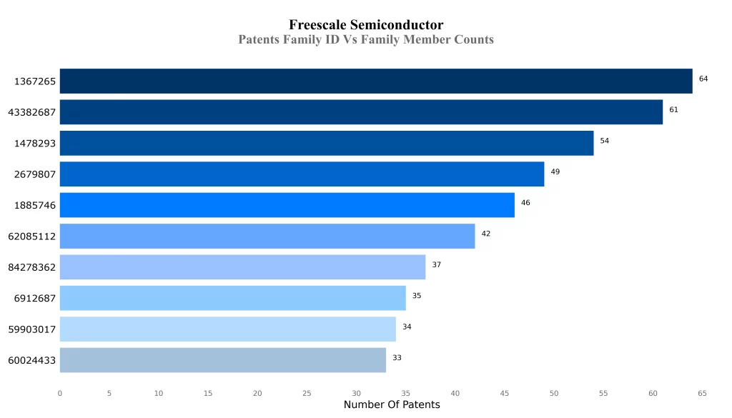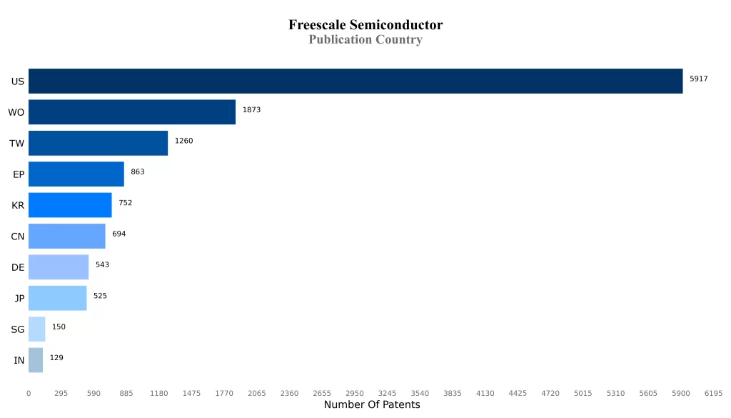 Freescale Semiconductor along with its key subsidiaries has a total of around 12910 patents/applications globally as of the date of the instant publication, out of which 657 patents have been issued. Of these 12910 patents/applications, more than 8.12% patents/applications are active. United States is where Freescale Semiconductor has filed the maximum number of patents, followed by World Intellectual Property Organization.