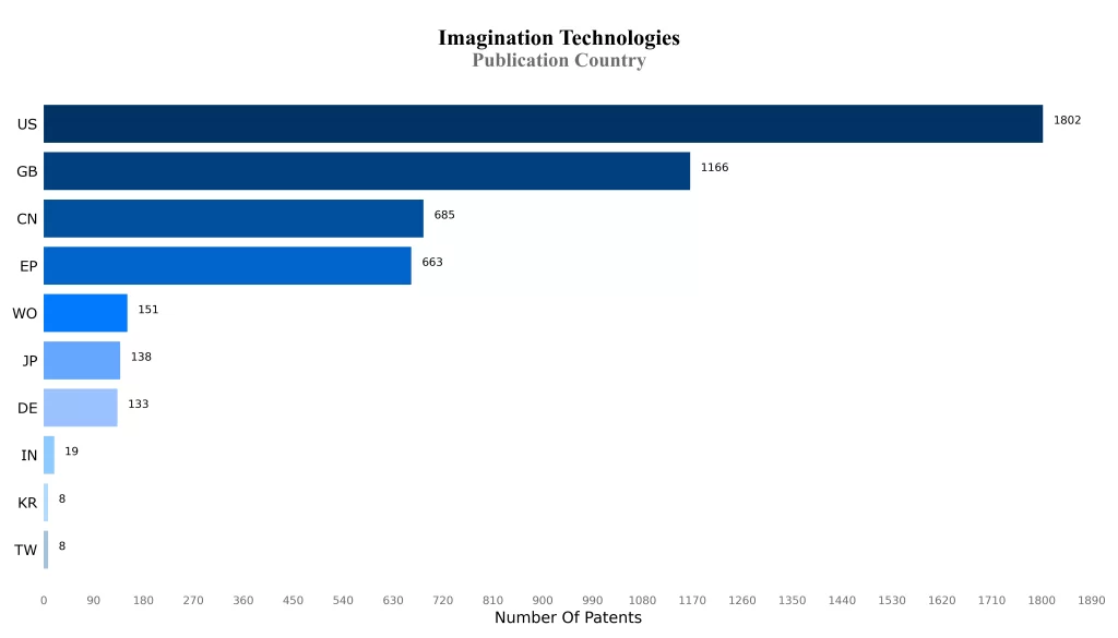 Imagination Technologies along with its key subsidiaries has a total of around 4799 patents/applications globally as of the date of the instant publication, out of which 2742 patents have been issued. Of these 4799 patents/applications, more than 78.87% patents/applications are active. United States is where Imagination Technologies has filed the maximum number of patents, followed by United Kingdom.