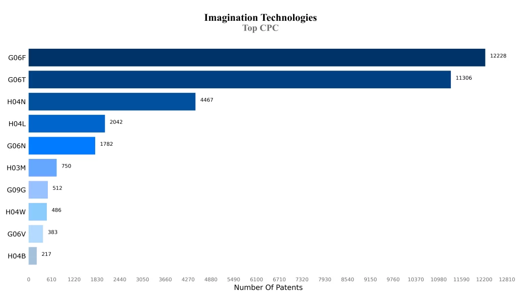 Most of the patents of the Imagination Technologies are in the classification of G06F and G06T, which indicates the core areas of technology focus of the company.