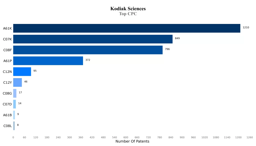 Most of the patents of the Kodiak Sciences are in the classification of A61K and C07K, which indicates the core areas of technology focus of the company.