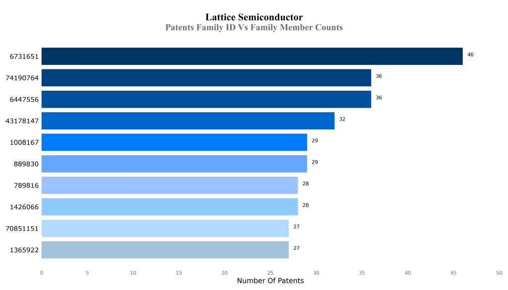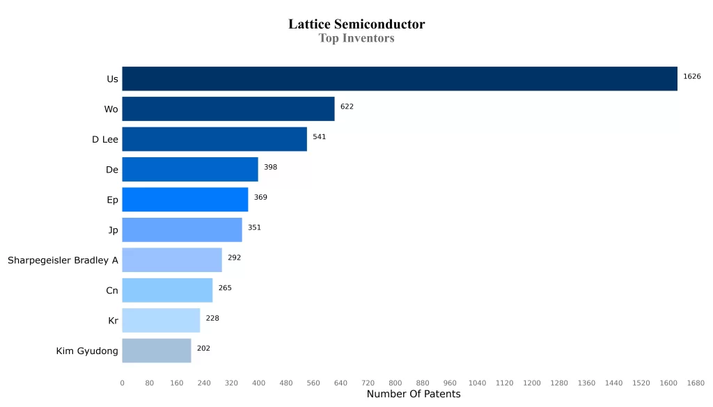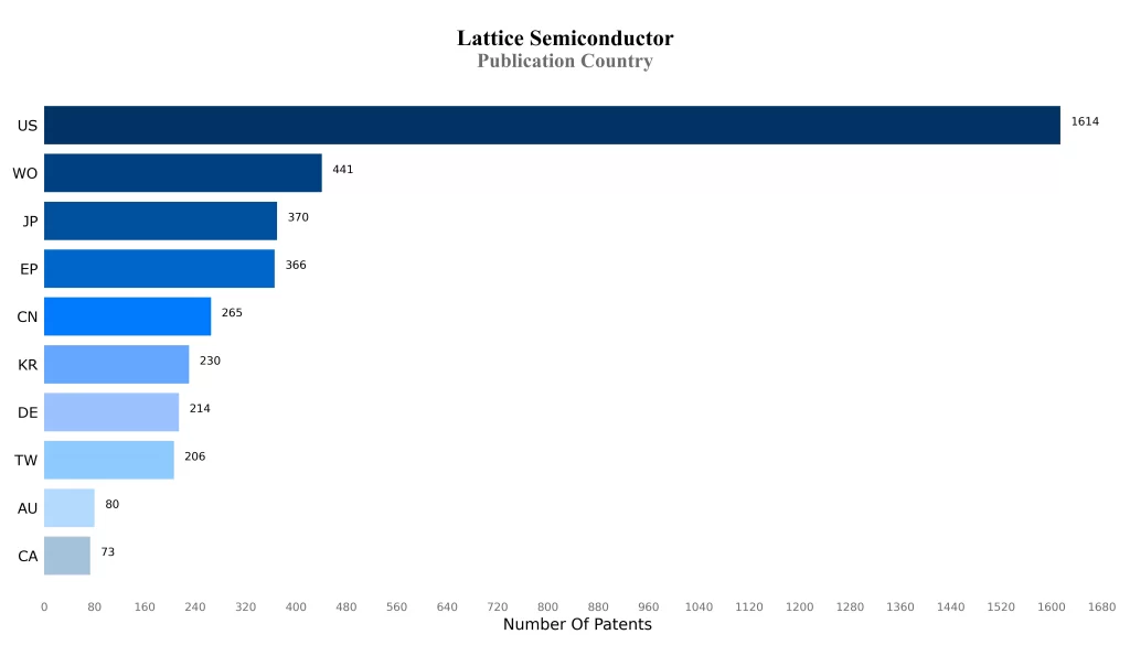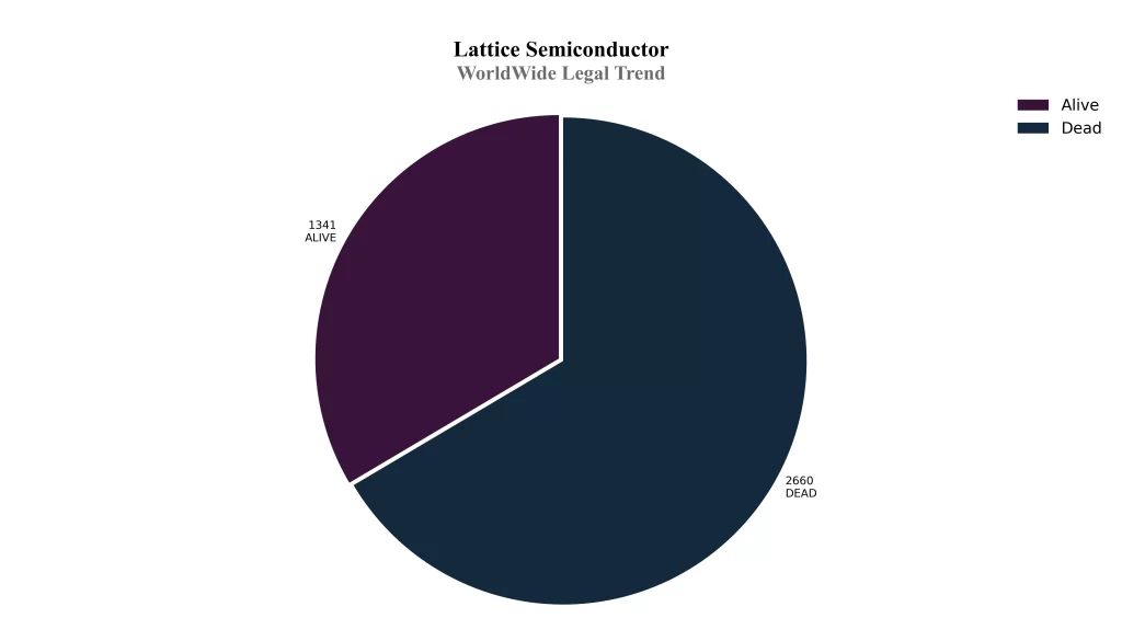 Lattice Semiconductor along with its key subsidiaries has a total of around 4001 patents/applications globally as of the date of the instant publication, out of which 1236 patents have been issued. Of these 4001 patents/applications, more than 33.52% patents/applications are active. United States is where Lattice Semiconductor has filed the maximum number of patents, followed by World Intellectual Property Organization.