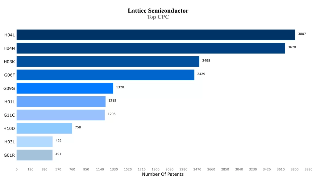 Most of the patents of the Lattice Semiconductor are in the classification of H04L and H04N, which indicates the core areas of technology focus of the company.
