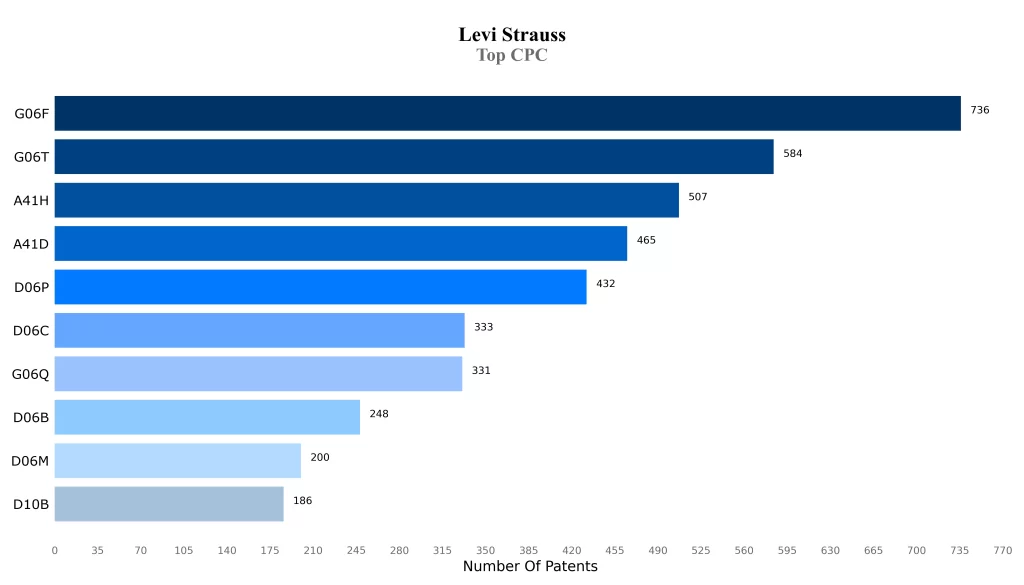 Most of the patents of the Levi Strauss are in the classification of G06F and G06T, which indicates the core areas of technology focus of the company.