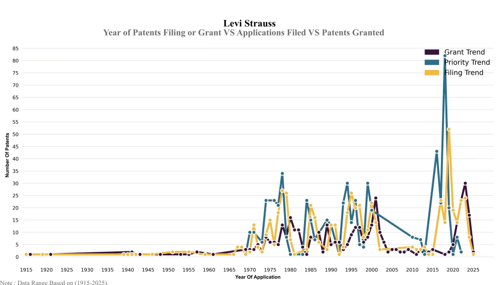 Levi Strauss is a leading technology company focused on innovation and creating and monetizing its Intellectual Property across jurisdictions. This exemplary study/report presents a high-level brief analysis of the Patent Portfolio of the Corporate, and various attributes/parameters on which the said entities Patent Portfolio is being represented.