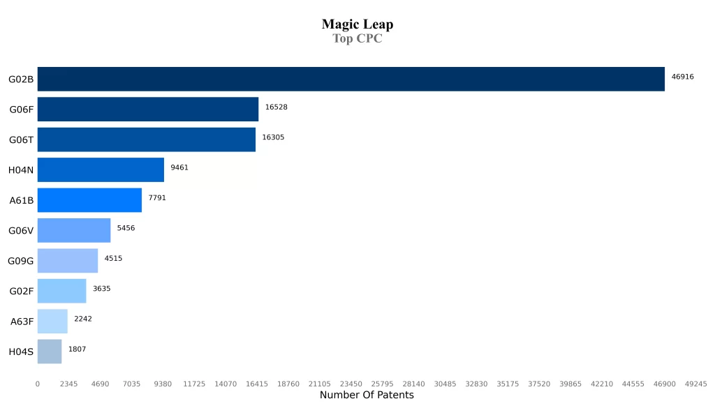 Most of the patents of the Magic Leap are in the classification of G02B and G06F, which indicates the core areas of technology focus of the company.