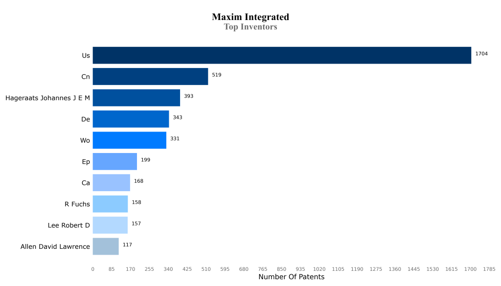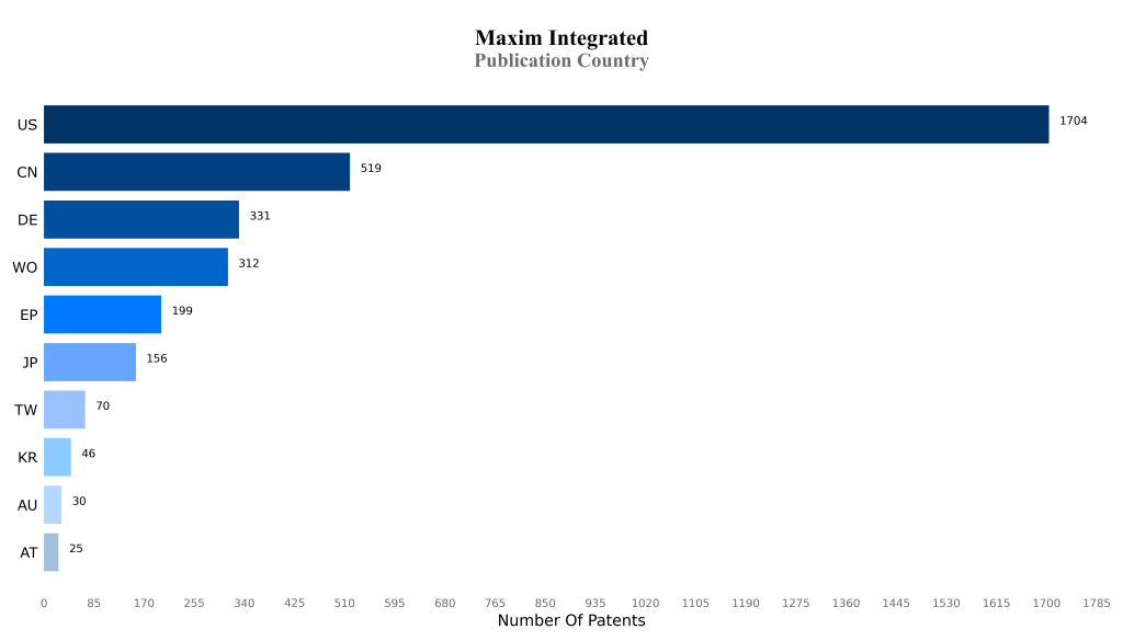Maxim Integrated along with its key subsidiaries has a total of around 3488 patents/applications globally as of the date of the instant publication, out of which 1499 patents have been issued. Of these 3488 patents/applications, more than 50.75% patents/applications are active. United States is where Maxim Integrated has filed the maximum number of patents, followed by China.