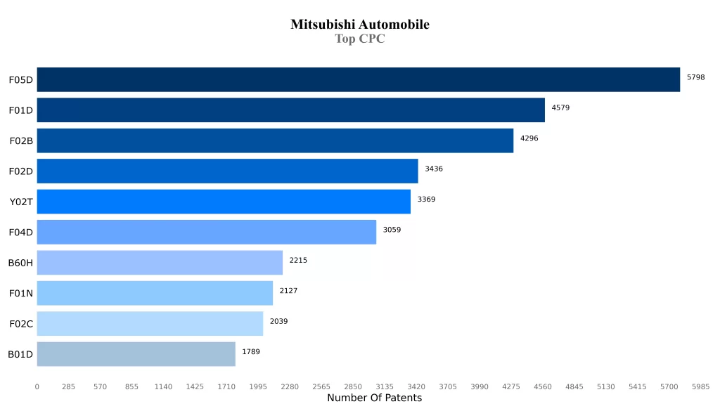 Most of the patents of the Mitsubishi Automobile are in the classification of F05D and F01D, which indicates the core areas of technology focus of the company.