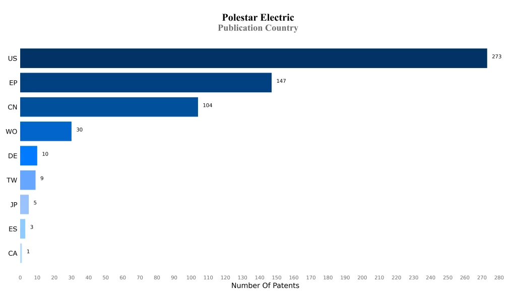 Polestar Electric along with its key subsidiaries has a total of around 582 patents/applications globally as of the date of the instant publication, out of which 411 patents have been issued. Of these 582 patents/applications, more than 89.0% patents/applications are active. United States is where Polestar Electric has filed the maximum number of patents, followed by European Patent Office.