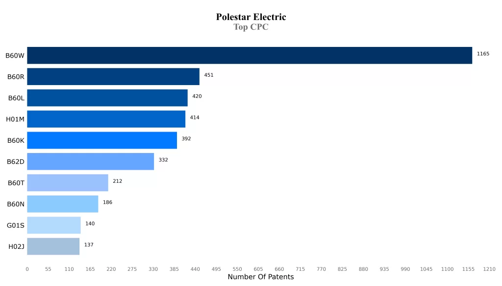 Most of the patents of the Polestar Electric are in the classification of B60W and B60R, which indicates the core areas of technology focus of the company.