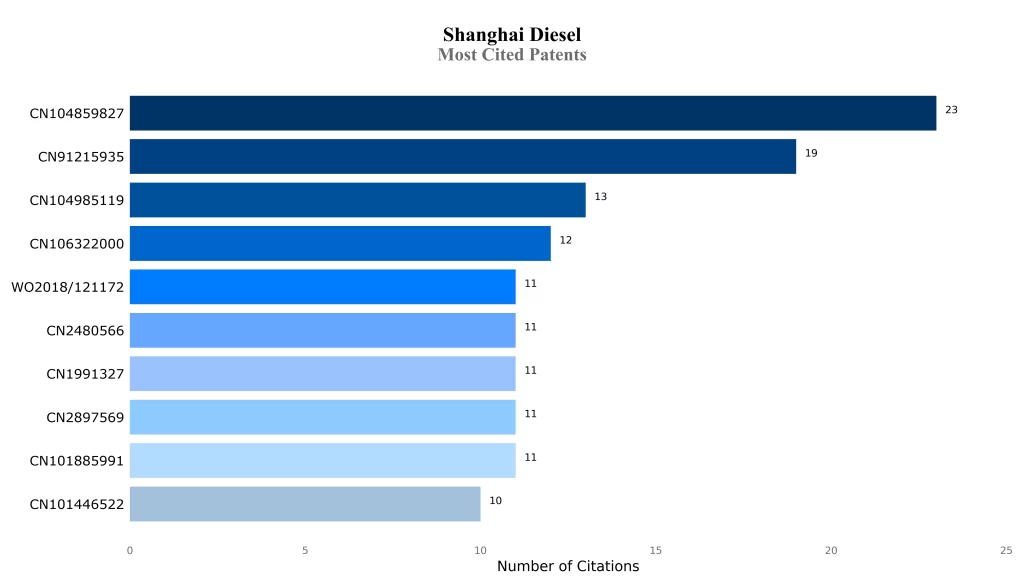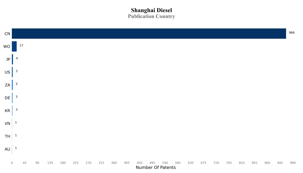 Shanghai Diesel along with its key subsidiaries has a total of around 1003 patents/applications globally as of the date of the instant publication, out of which 407 patents have been issued. Of these 1003 patents/applications, more than 84.35% patents/applications are active. China is where Shanghai Diesel has filed the maximum number of patents, followed by World Intellectual Property Organization.