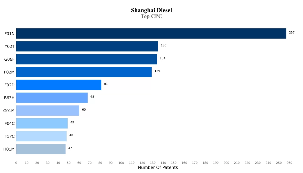 Most of the patents of the Shanghai Diesel are in the classification of F01N and Y02T, which indicates the core areas of technology focus of the company.