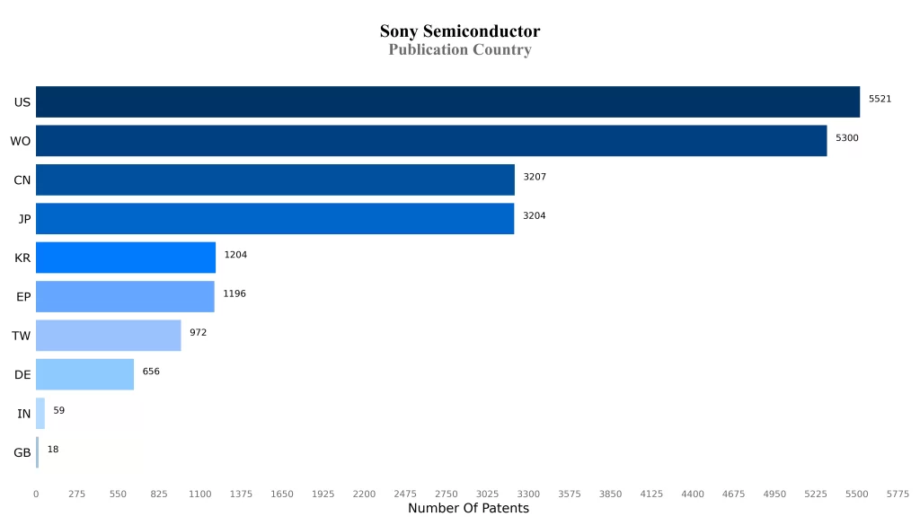 Sony Semiconductor along with its key subsidiaries has a total of around 21295 patents/applications globally as of the date of the instant publication, out of which 6252 patents have been issued. Of these 21295 patents/applications, more than 72.87% patents/applications are active. United States is where Sony Semiconductor has filed the maximum number of patents, followed by World Intellectual Property Organization.