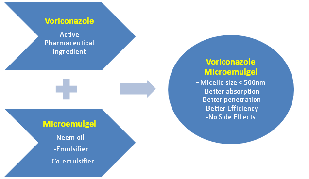 The invention relates to the formulation of voriconazole topical antifungal microemulgel. As compared to gel and other topical preparations microemulgel has been prepared by screening of oils, emulsifier, and co-emulsifier on bases of solubility of an API in it. An API has high solubility and oil may also have more or less pharmacological property, so it may assist the therapeutic action of API. Due to presence of oil portion, it leads to more penetration of API in the skin. Oil Micelle Size is less than 500 nm which provides more area for absorption of API in the skin so more penetration and more effective than macro-emulsion. Microemulgel has an advantage of emulgel that has dual benefits of micro-emulsion and gel and several other desirable properties like good consistency, thyrotrophic, greaseless, easily spreadable as well as removable, emollient, non-staining, water soluble, longer shelf-life, bio-friendly, transparent, pleasant appearance, ability of patients for self-medication, termination of medications will be easy, etc.