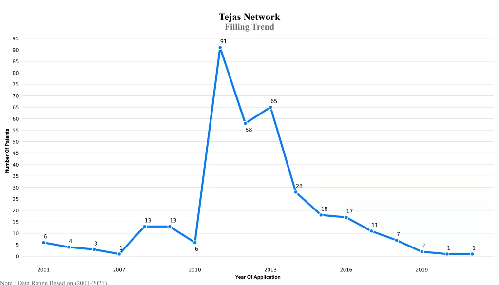 Tejas Network is a leading technology company focused on innovation and creating and monetizing its Intellectual Property across jurisdictions. This exemplary study/report presents a high-level brief analysis of the Patent Portfolio of the Corporate, and various attributes/parameters on which the said entitys’ Patent Portfolio is being represented.