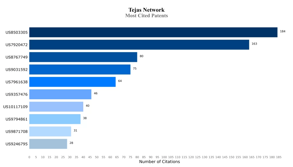 US8503305 is the most cited patent in the Tejas Network Portfolio. It has received 184 citations thus far.