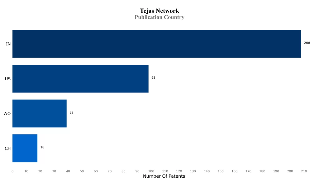 Tejas Network along with its key subsidiaries has a total of around 345 patents/applications globally as of the date of the instant publication, out of which 253 patents have been issued. Of these 345 patents/applications, more than 75.65% patents/applications are active. India is where Tejas Network has filed the maximum number of patents, followed by United States.