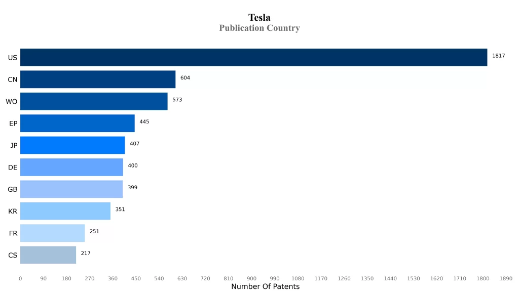 Countries in which Tesla Filed Patents