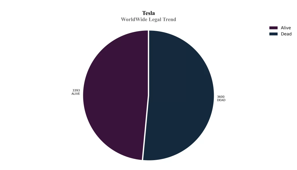 How many Tesla Portfolio patents are Alive/Dead?