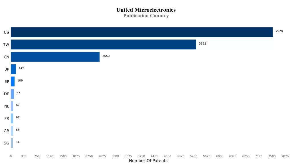 United Microelectronics along with its key subsidiaries has a total of around 16089 patents/applications globally as of the date of the instant publication, out of which 5413 patents have been issued. Of these 16089 patents/applications, more than 44.49% patents/applications are active. United States is where United Microelectronics has filed the maximum number of patents, followed by Taiwan.