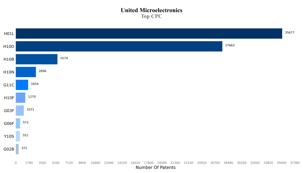 Most of the patents of the United Microelectronics are in the classification of H01L and H10D, which indicates the core areas of technology focus of the company.