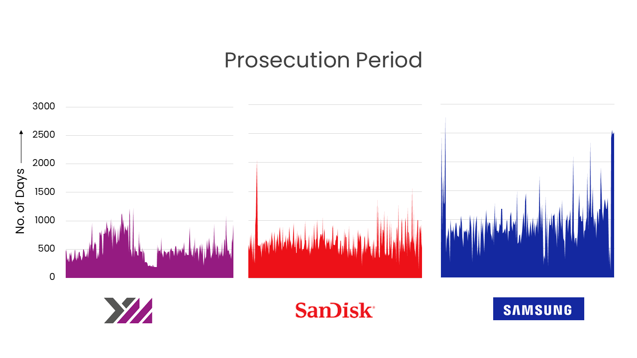 In addition to this, close to 50% of the patent families published by Yangtze Memory Technologies is still under prosecution which suggests that the base technology on which YMTC is working isn’t saturated yet and a lot newer improvement/ continuation patents will be seen in the coming days. On the other hand, an analysis of the count of pending patents assigned to other key players indicates that they are working at a slower pace or working on technologies that are the are the verge of saturation.